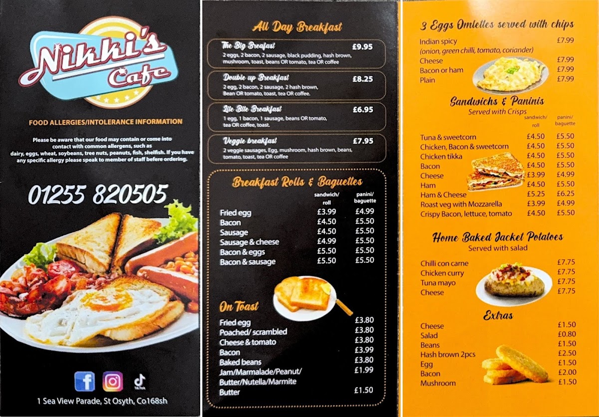 Welcome to Nikki's Cafe, a charming spot located at 1 Seaview Rd, St. Osyth, Clacton-on-Sea. This hidden gem serves a delightful mix of fresh, flavorful dishes that create a warm and welcoming atmosphere. The menu features an impressive selection of pizzas—including the classic Margarita for £10.99 and customizable options for £13.99.